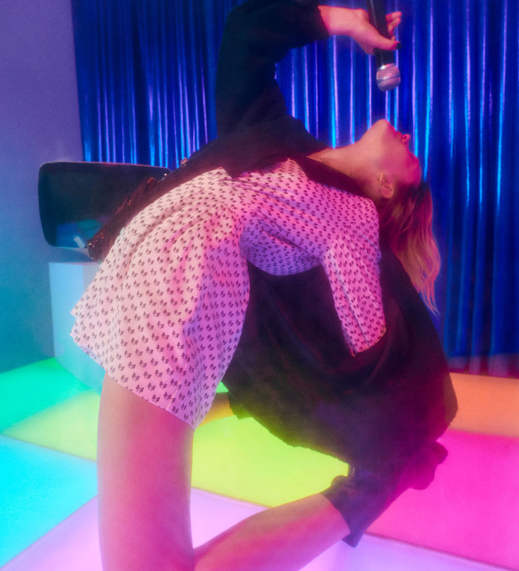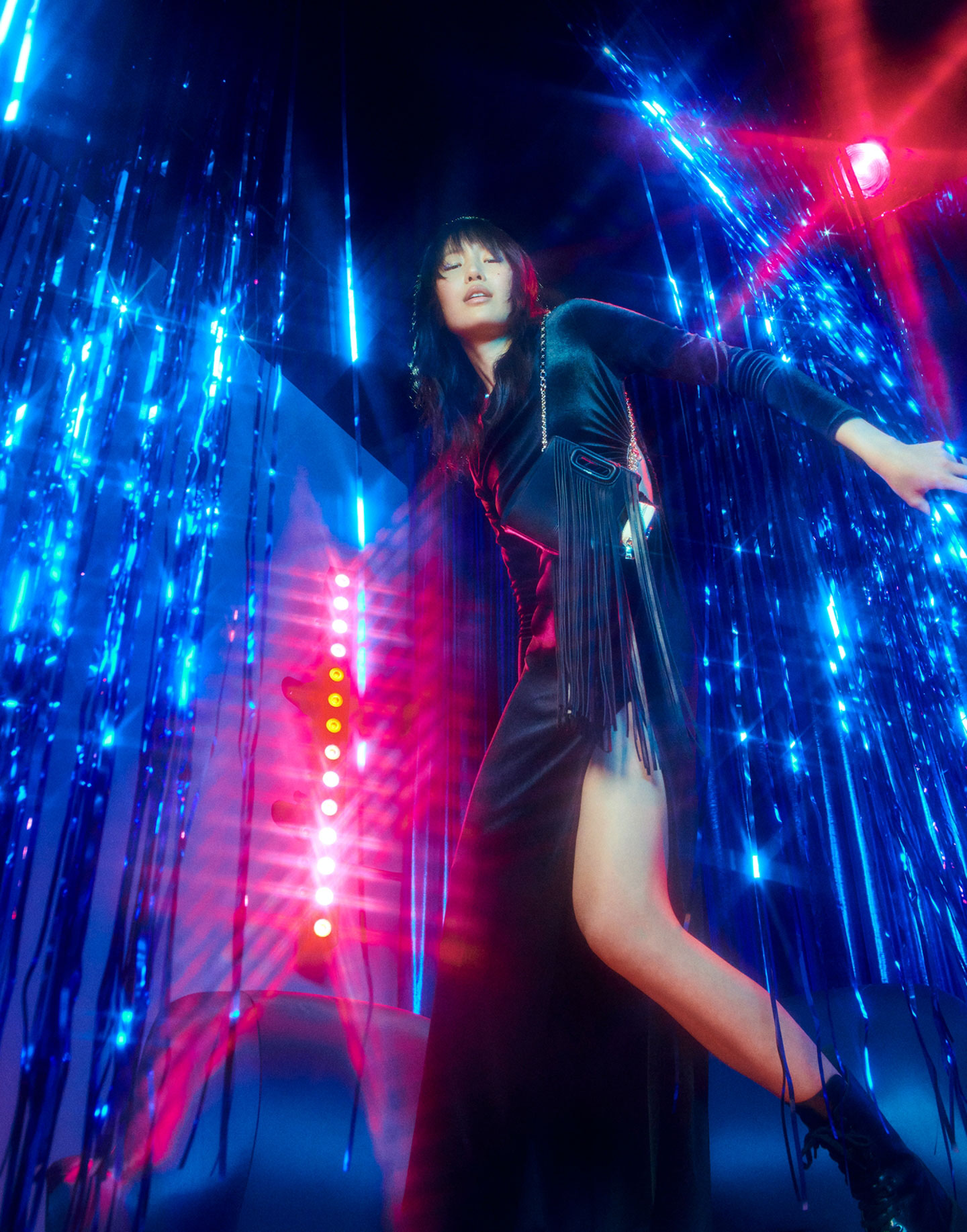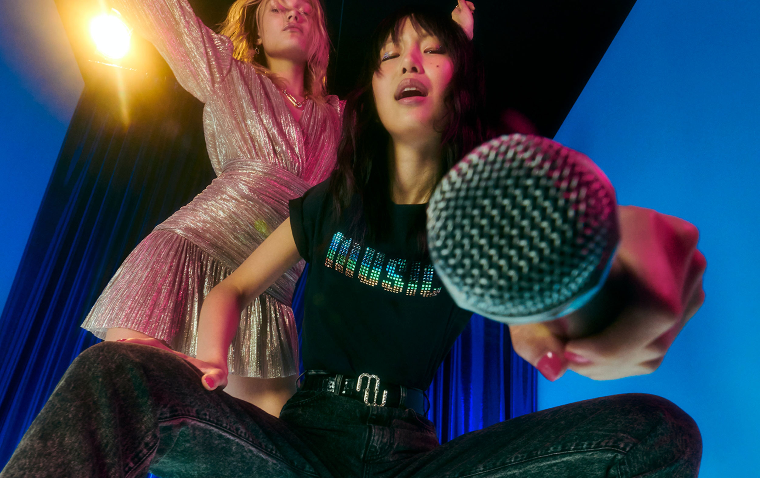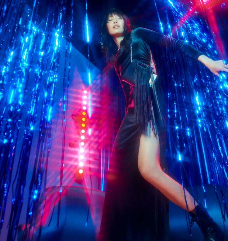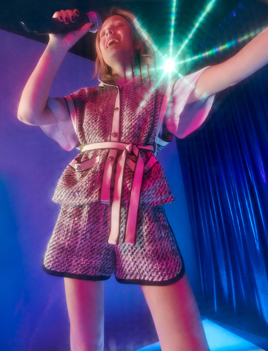 In this last episode of the season: the Maje girls meet for a karaoke night. 80s hits that bring out the inner diva and make you forget everything else. Like Cyndi, these are just having fun in a sexy and elegant capsule, with black as a key note.